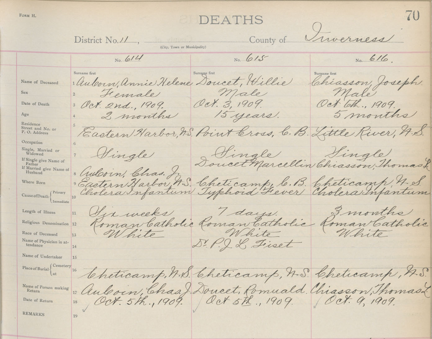 Death Registration: Year: 1909 book: 11 page: 70 number: 614