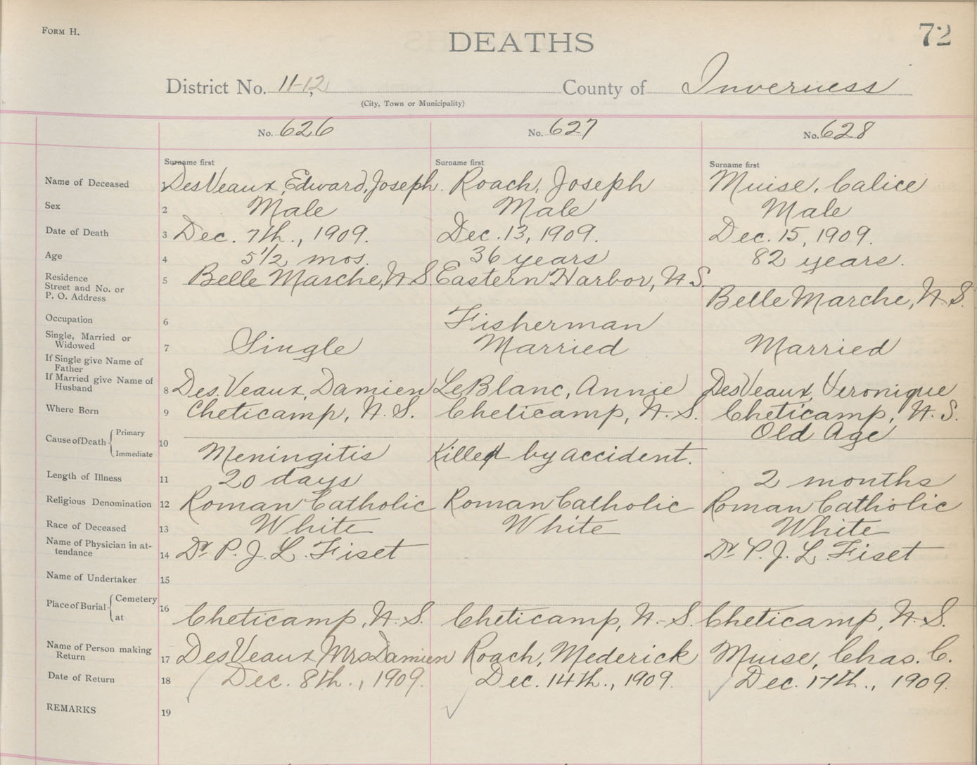 Death Registration: Year: 1909 book: 11 page: 72 number: 626