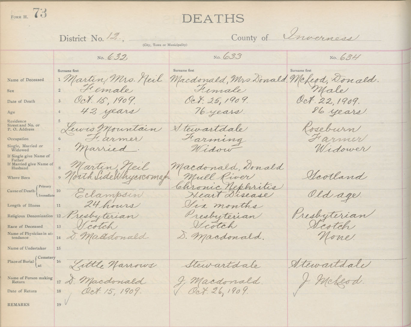 Death Registration: Year: 1909 book: 11 page: 73 number: 632