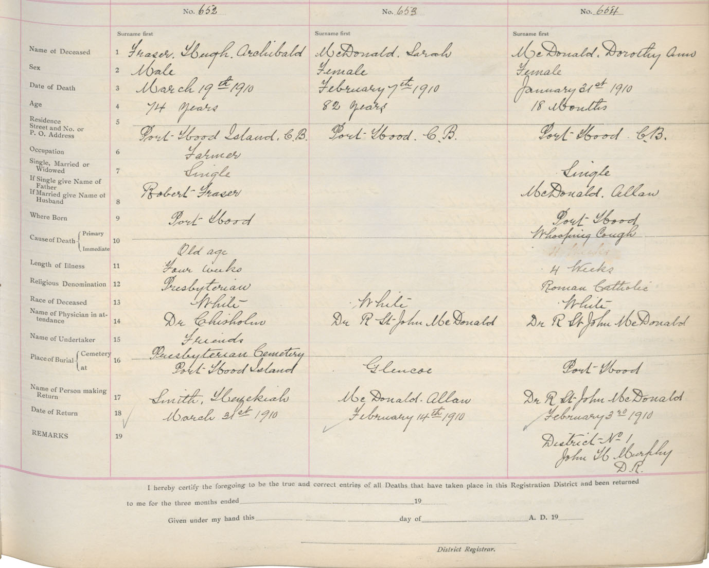 Death Registration: Year: 1910 book: 11 page: 76 number: 652