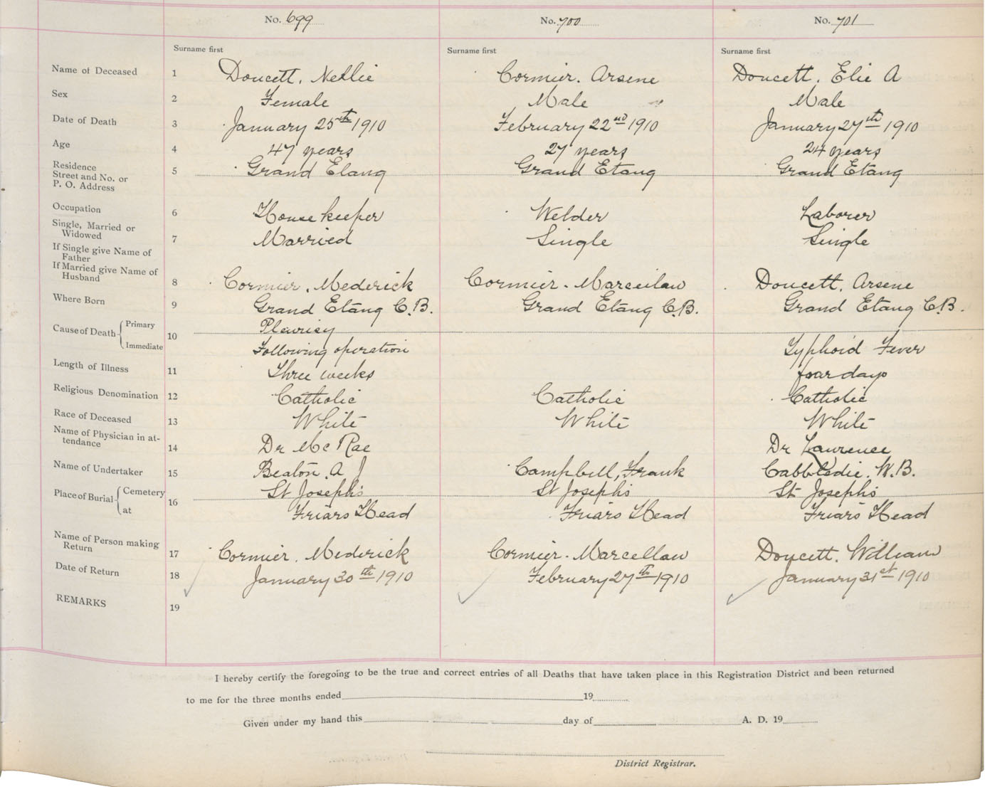 Death Registration: Year: 1910 book: 11 page: 84 number: 699
