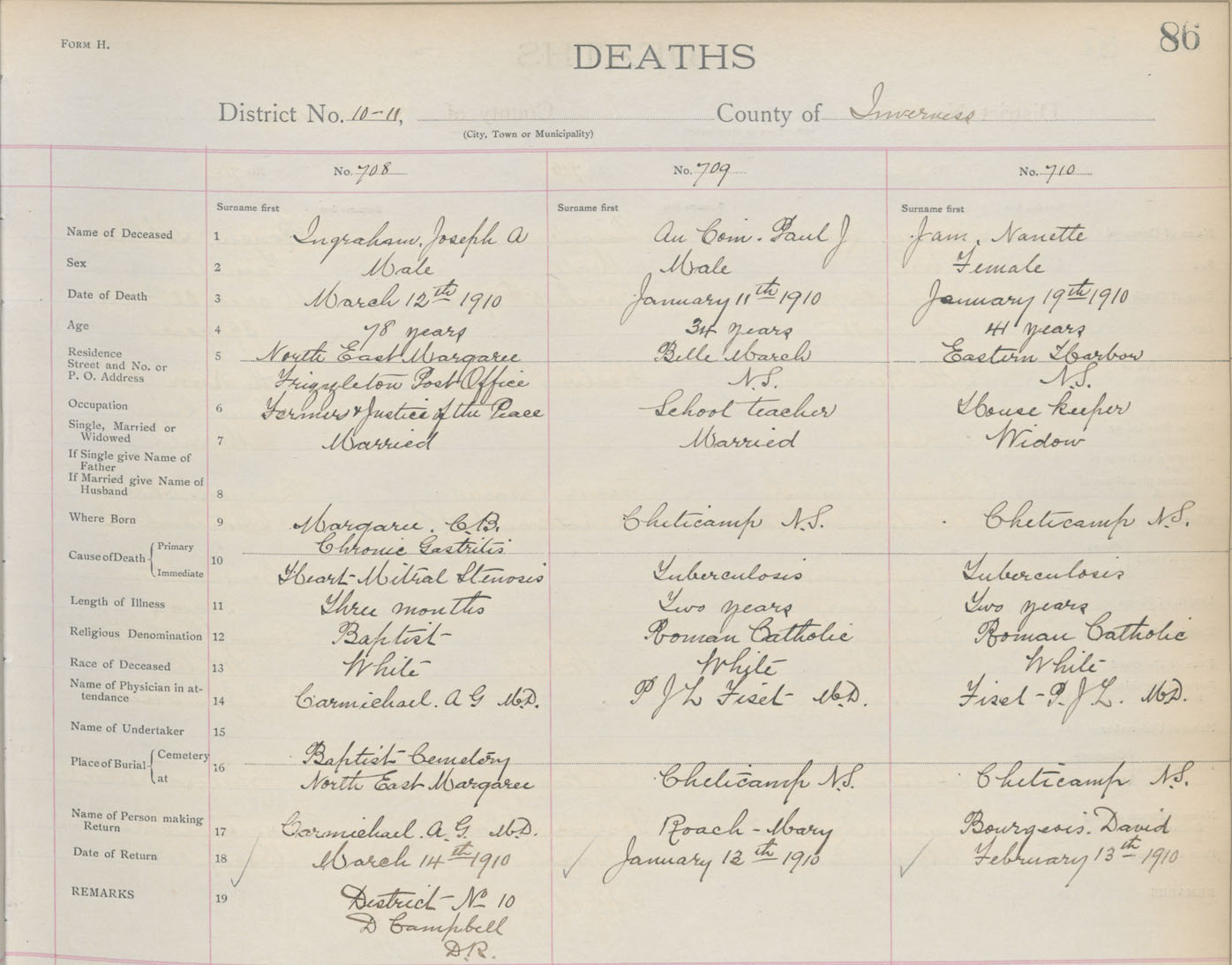 Death Registration: Year: 1910 book: 11 page: 86 number: 708