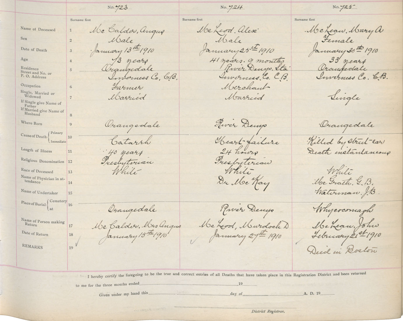 Death Registration: Year: 1910 book: 11 page: 88 number: 723