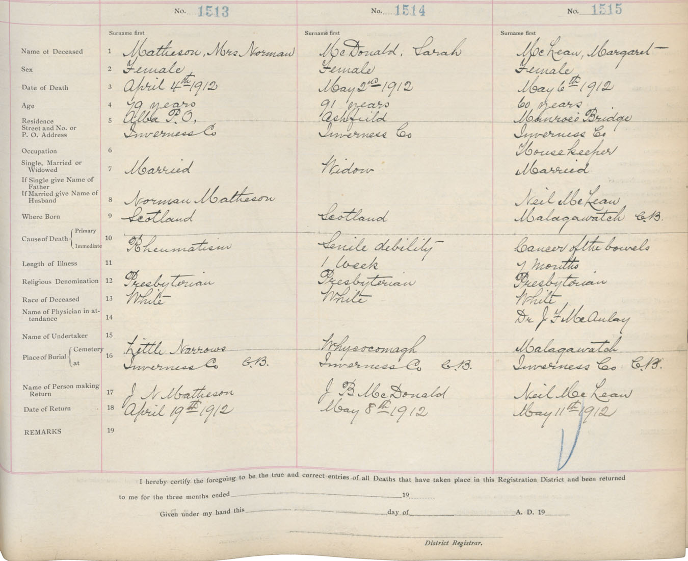 Death Registration: Year: 1912 book: 11 page: 220 number: 1515