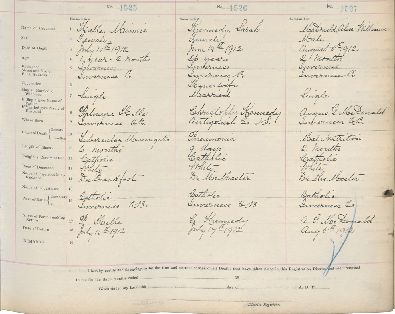 Death Registration: Year: 1912 book: 11 page: 222 number: 1527