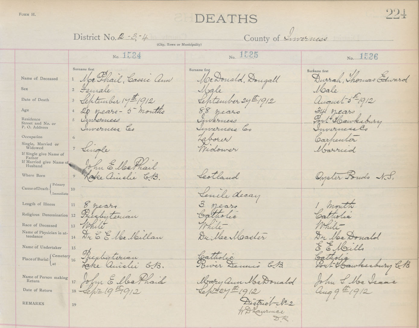 Death Registration: Year: 1912 book: 11 page: 224 number: 1536