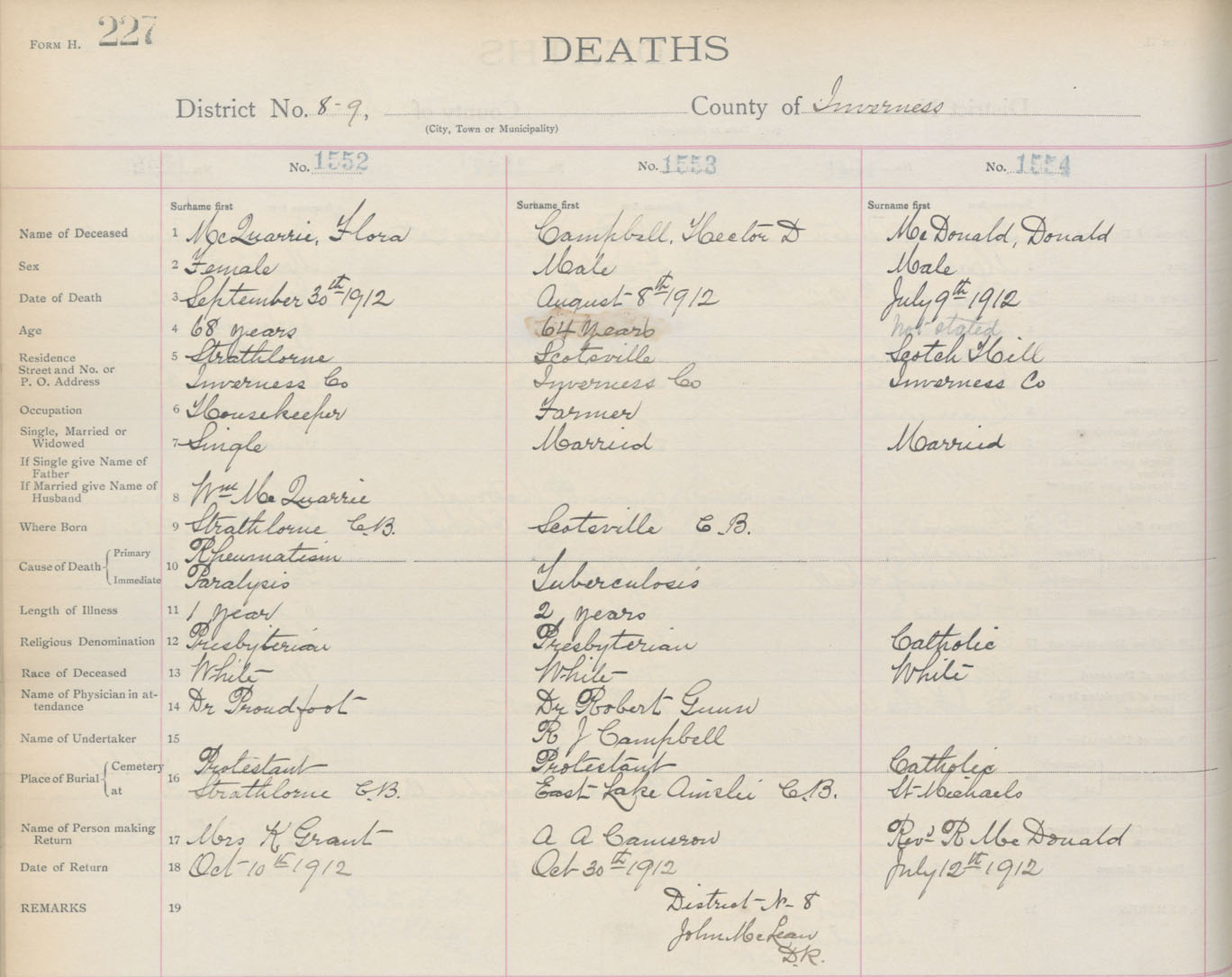 Death Registration: Year: 1912 book: 11 page: 227 number: 1554