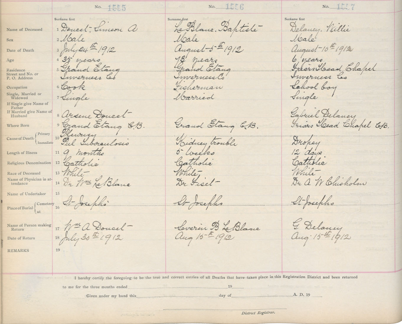 Death Registration: Year: 1912 book: 11 page: 227 number: 1557
