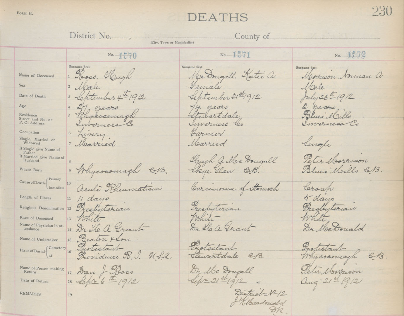 Death Registration: Year: 1912 book: 11 page: 230 number: 1572