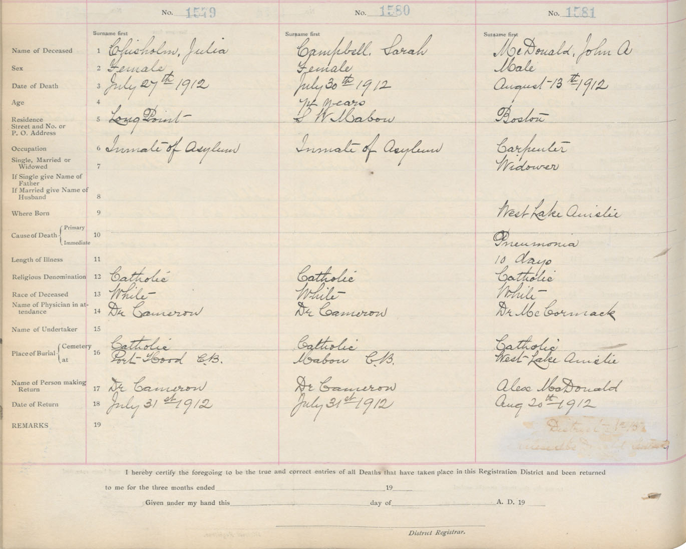 Death Registration: Year: 1912 book: 11 page: 231 number: 1581