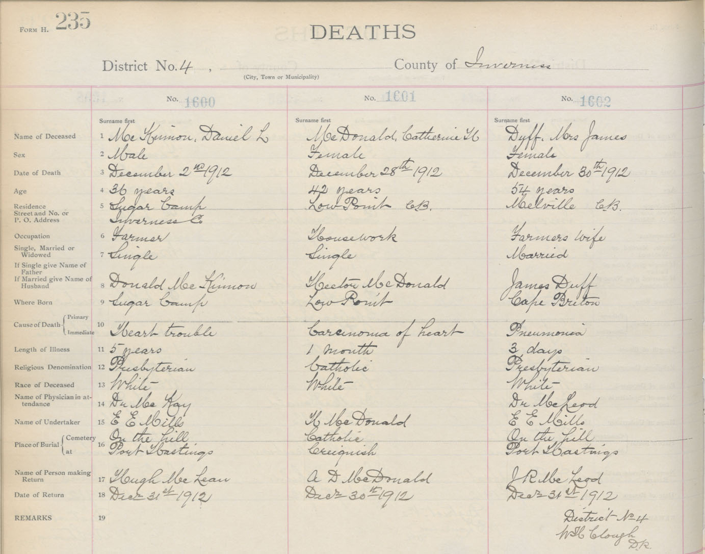Death Registration: Year: 1912 book: 11 page: 235 number: 1602
