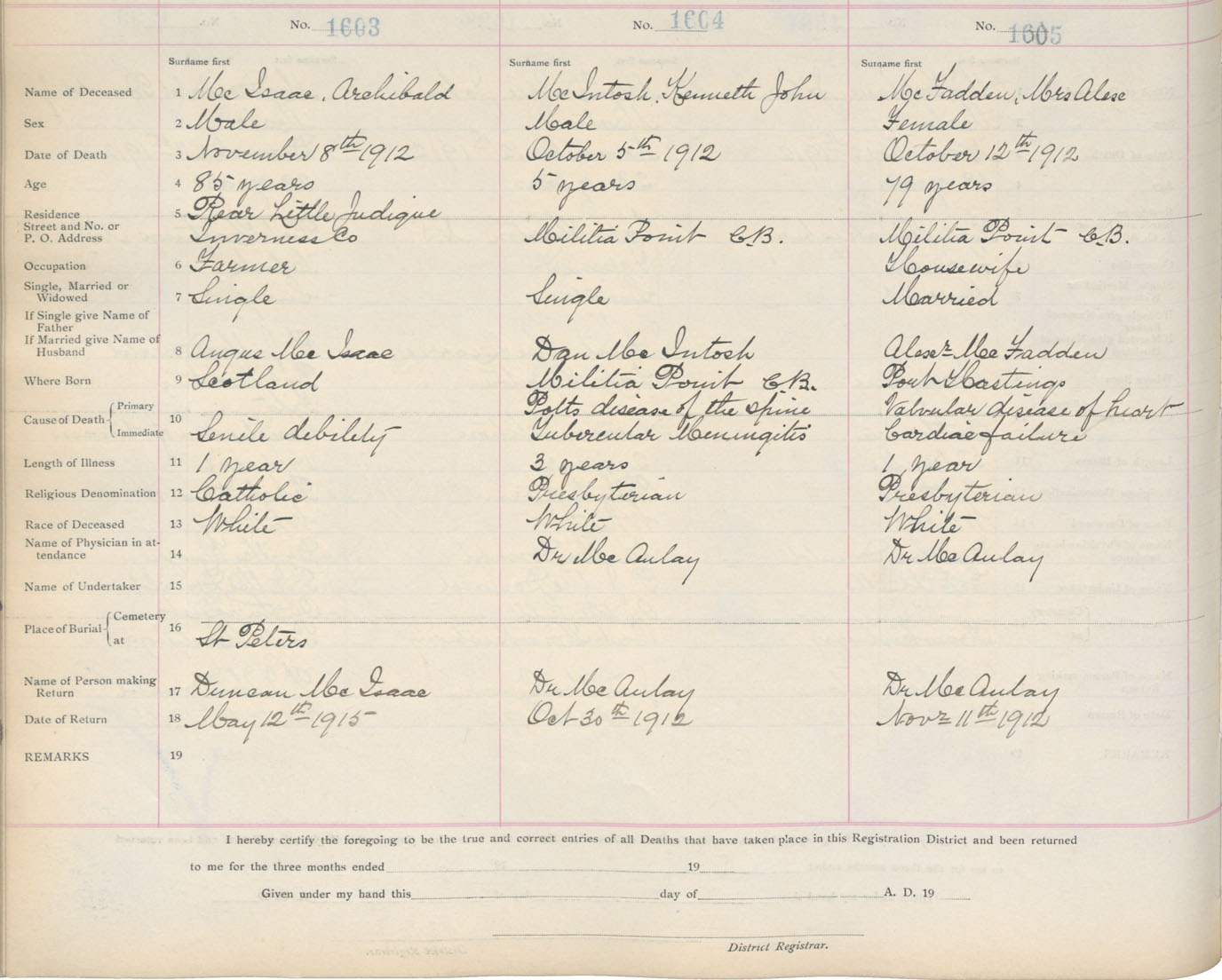 Death Registration: Year: 1912 book: 11 page: 235 number: 1605