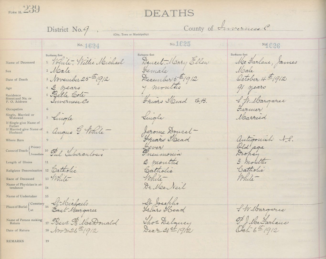 Death Registration: Year: 1912 book: 11 page: 239 number: 1626