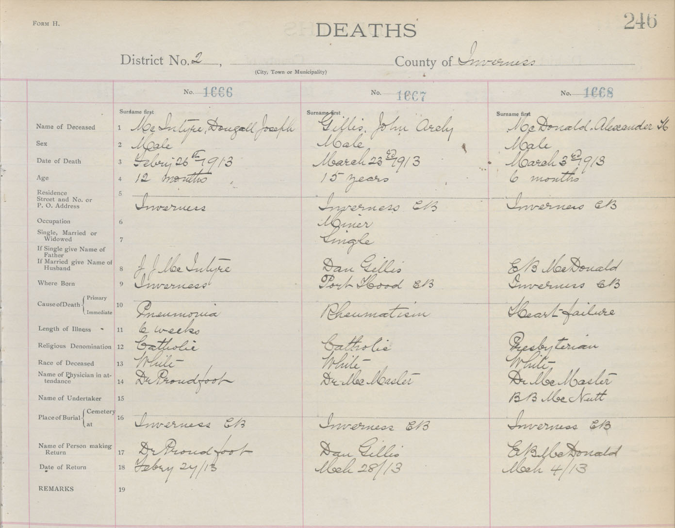 Death Registration: Year: 1913 book: 11 page: 246 number: 1668