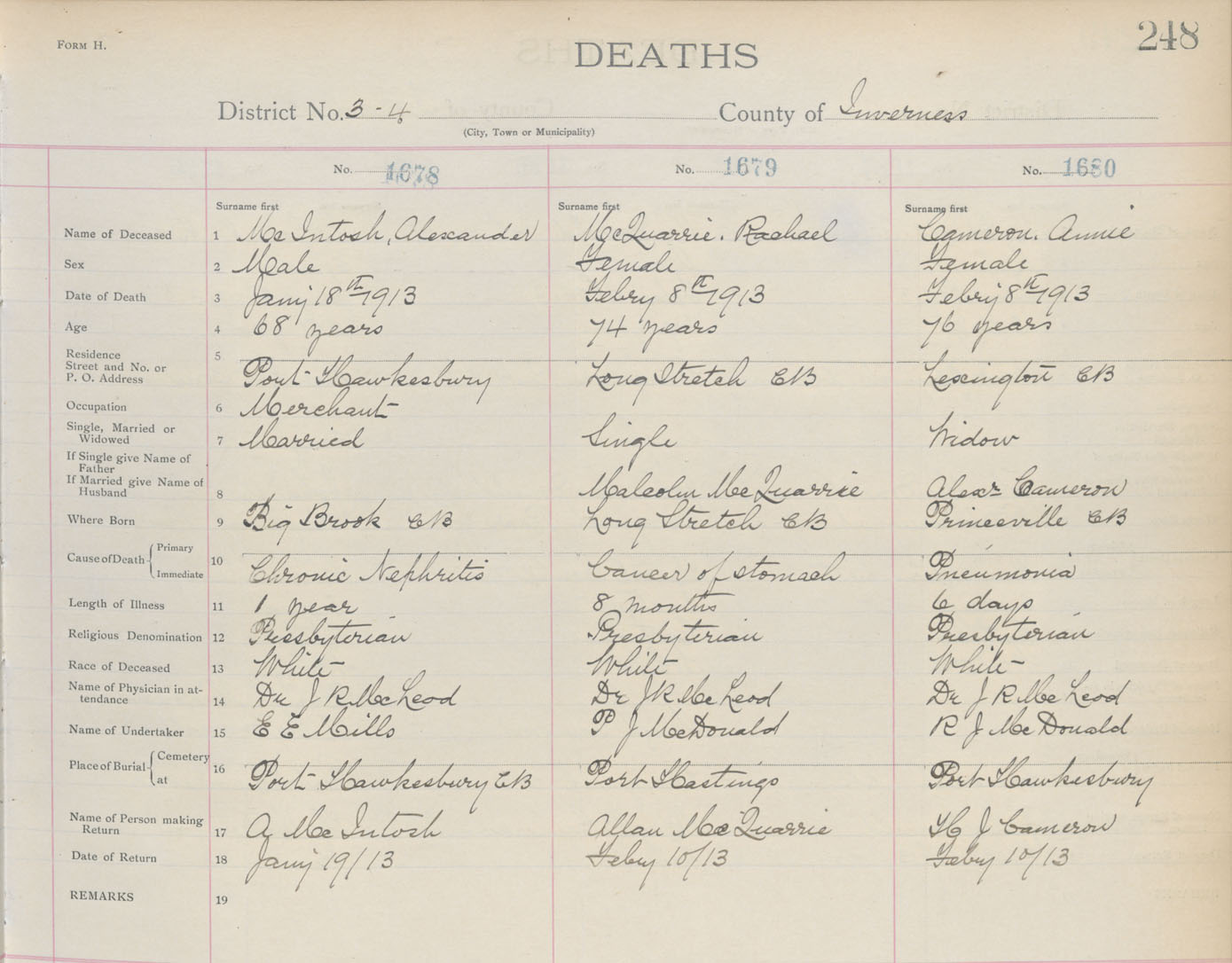 Death Registration: Year: 1913 book: 11 page: 248 number: 1680