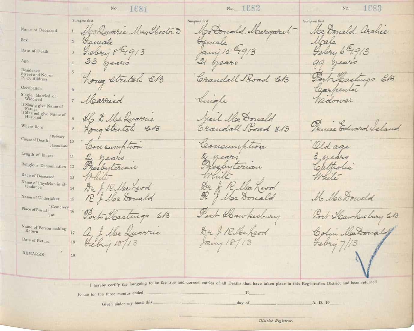 Death Registration: Year: 1913 book: 11 page: 248 number: 1683