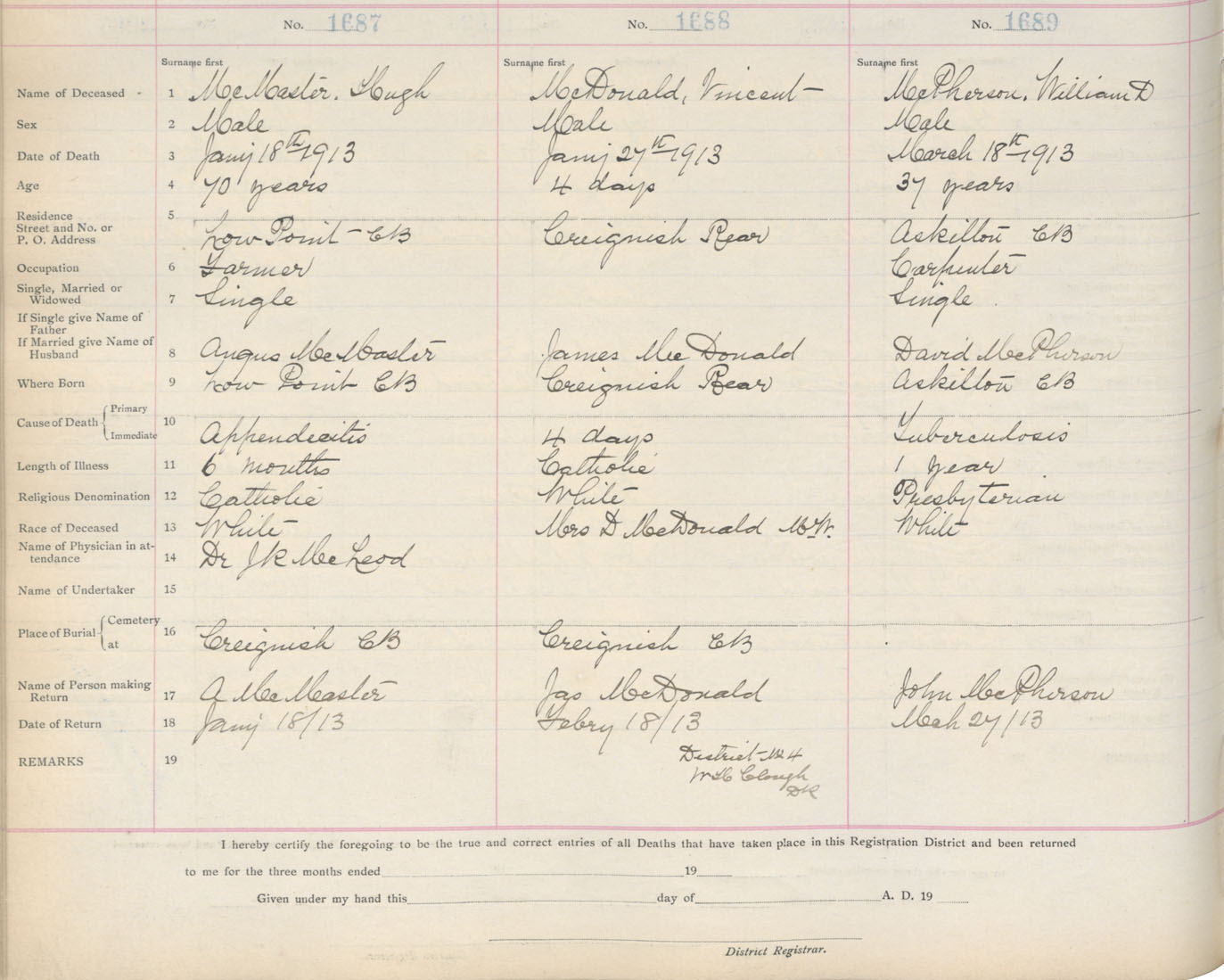 Death Registration: Year: 1913 book: 11 page: 249 number: 1689