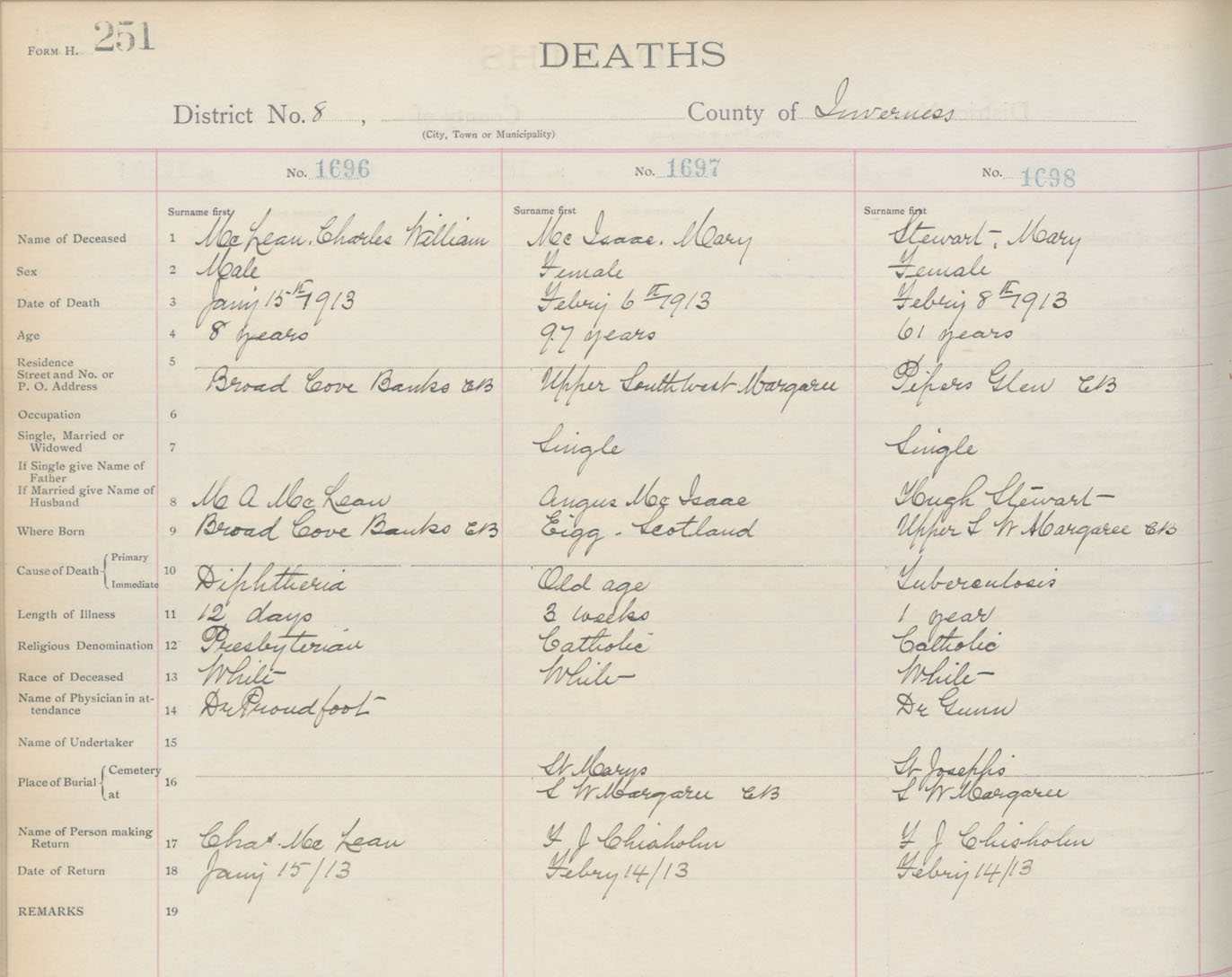 Death Registration: Year: 1913 book: 11 page: 251 number: 1698