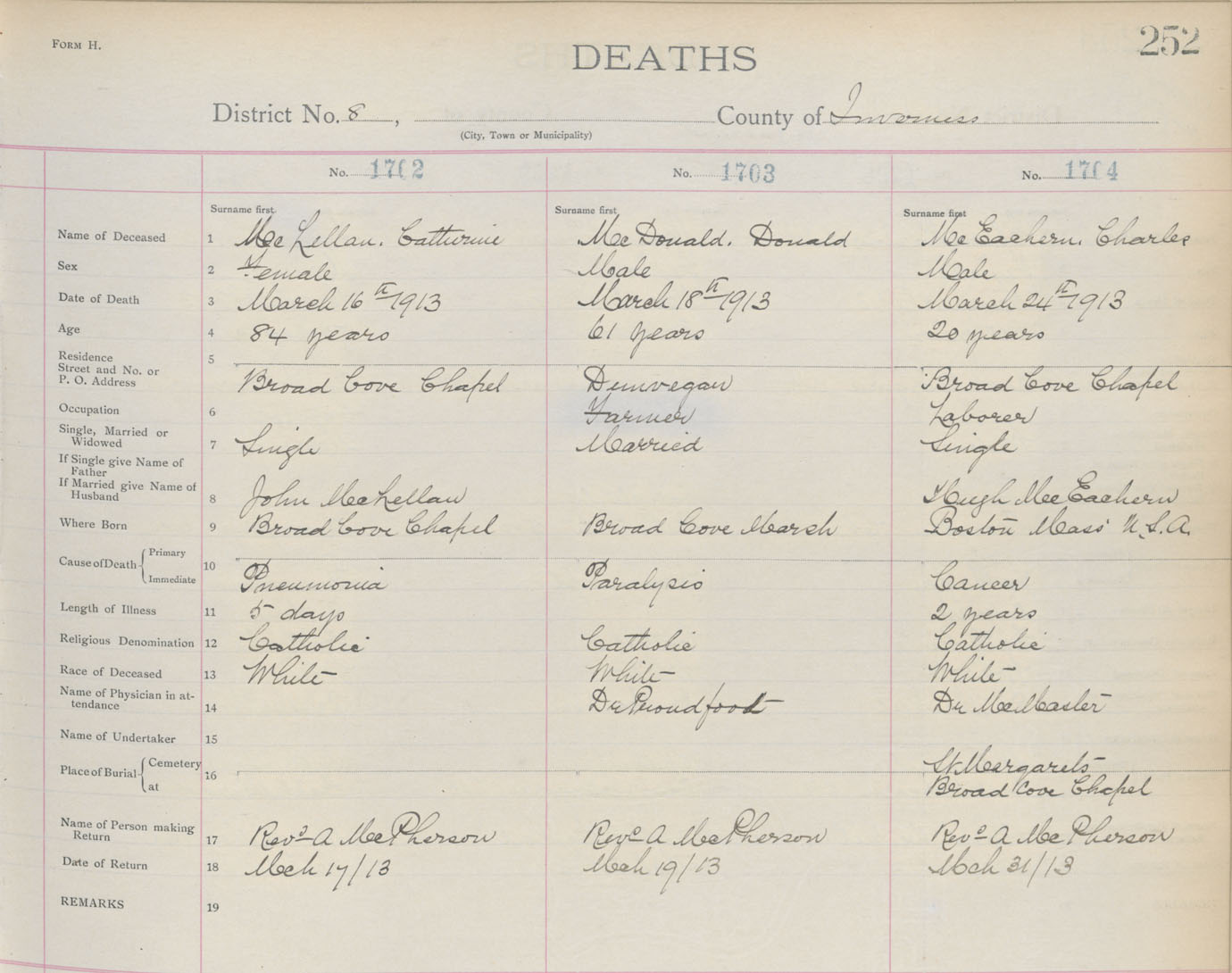 Death Registration: Year: 1913 book: 11 page: 252 number: 1704