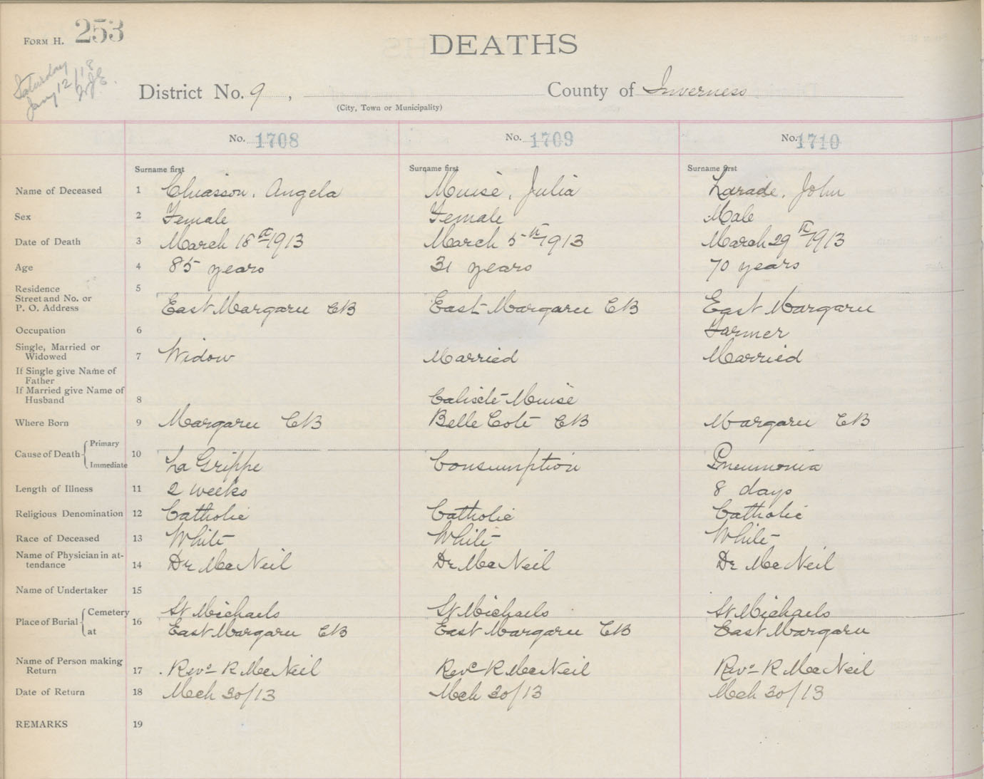 Death Registration: Year: 1913 book: 11 page: 253 number: 1710