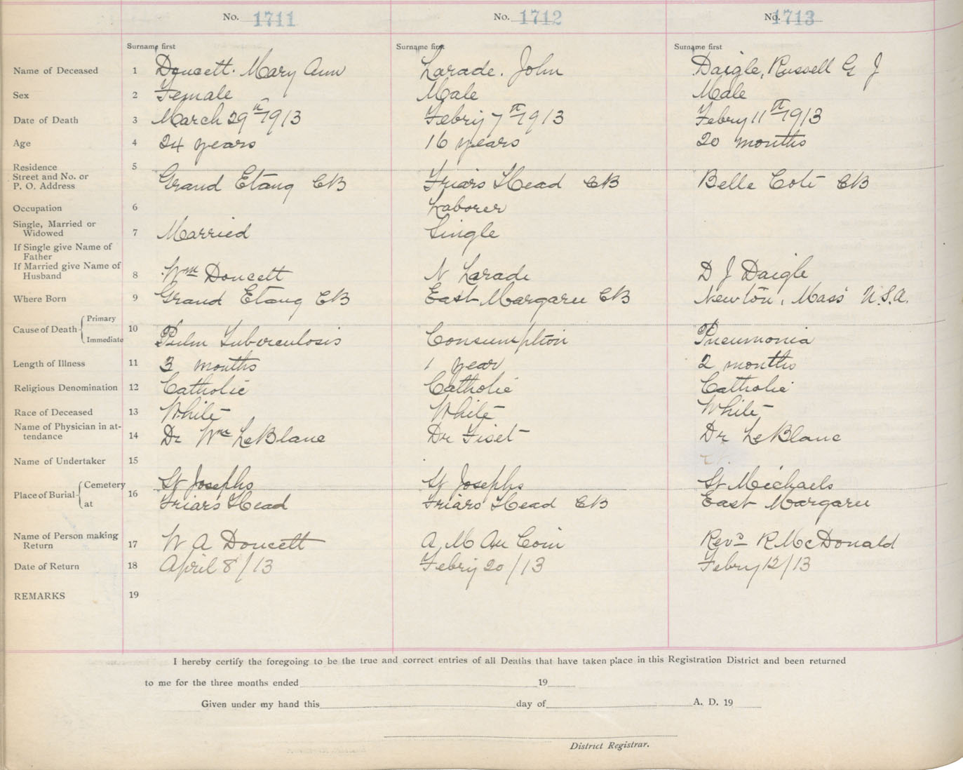 Death Registration: Year: 1913 book: 11 page: 253 number: 1713