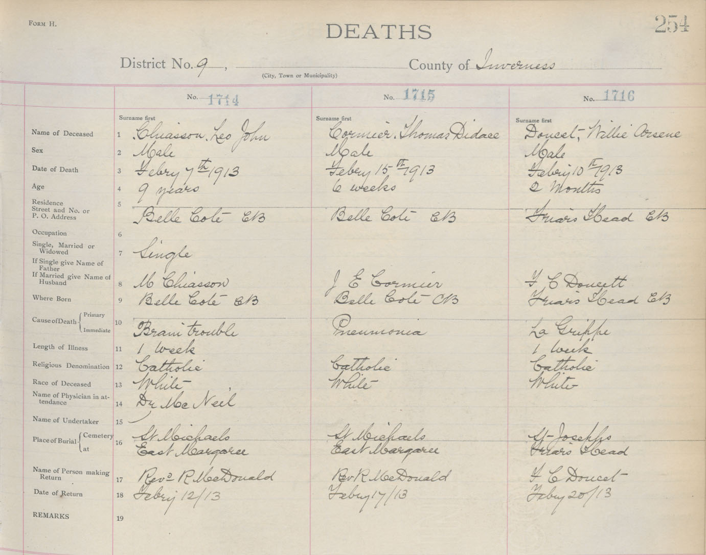 Death Registration: Year: 1913 book: 11 page: 254 number: 1716
