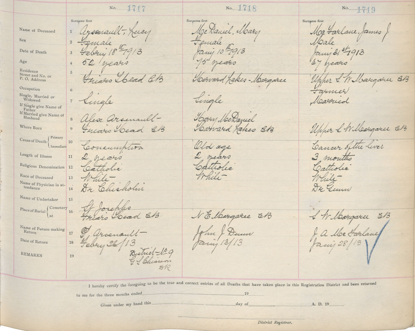 Death Registration: Year: 1913 book: 11 page: 254 number: 1719