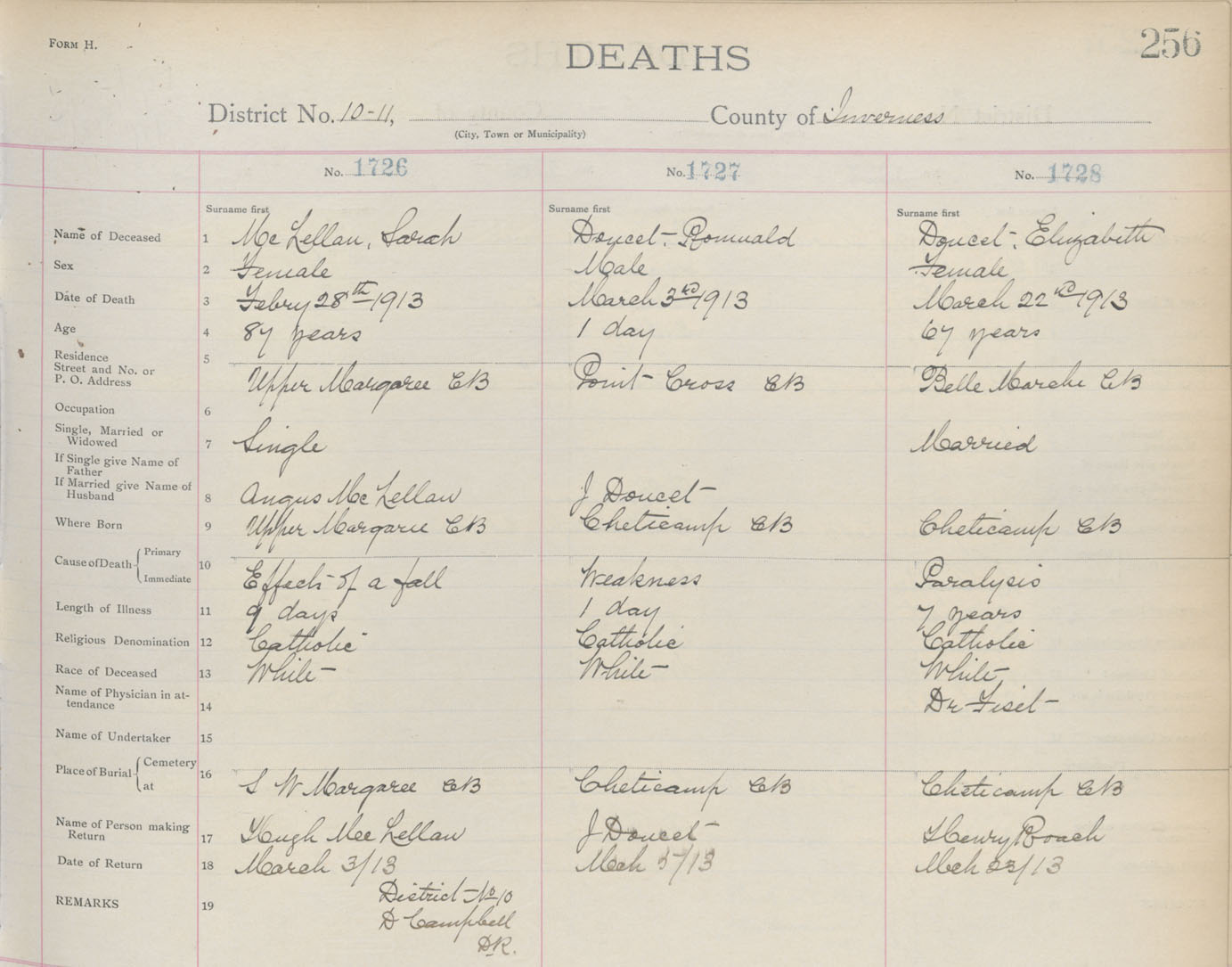 Death Registration: Year: 1913 book: 11 page: 256 number: 1728