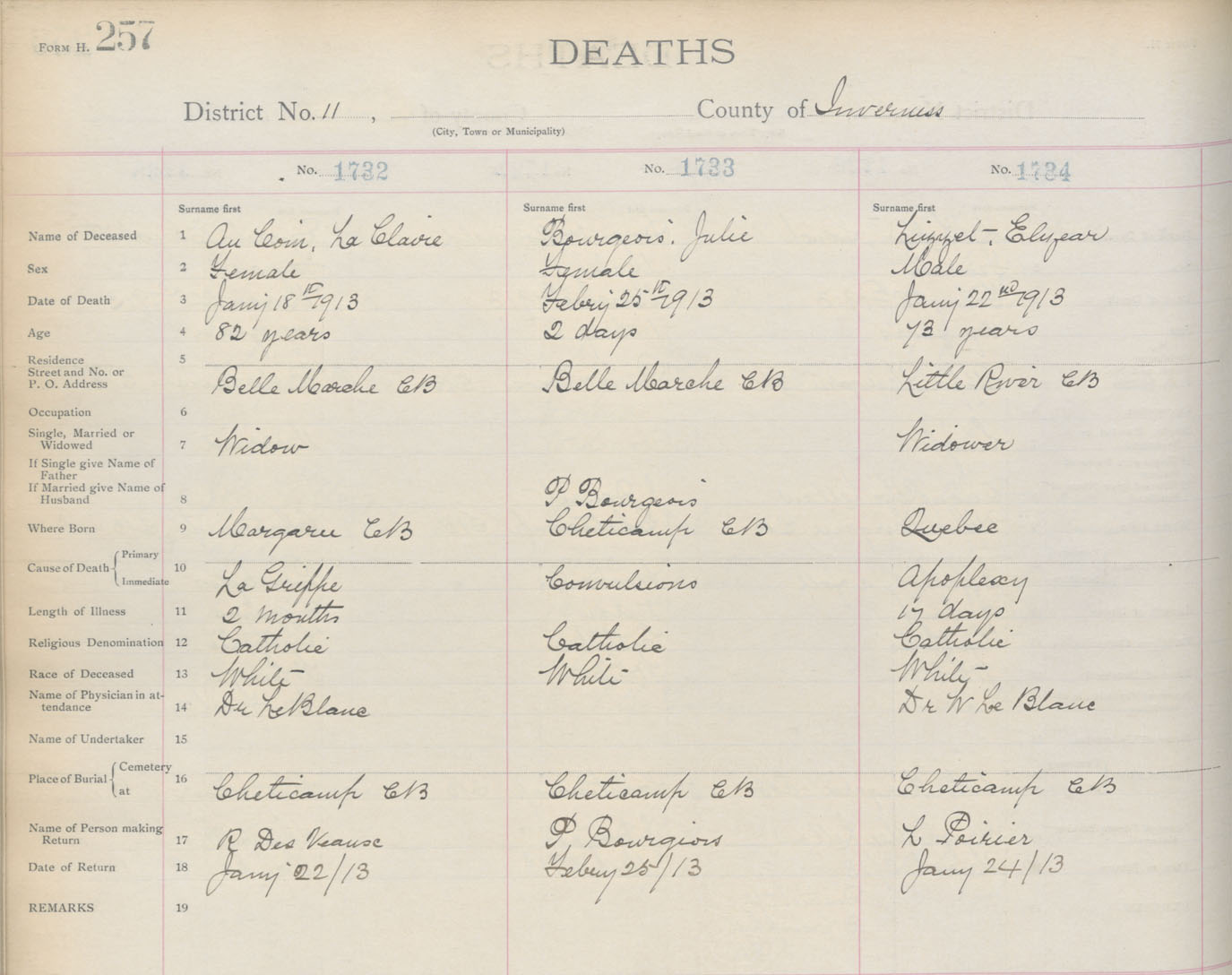 Death Registration: Year: 1913 book: 11 page: 257 number: 1734