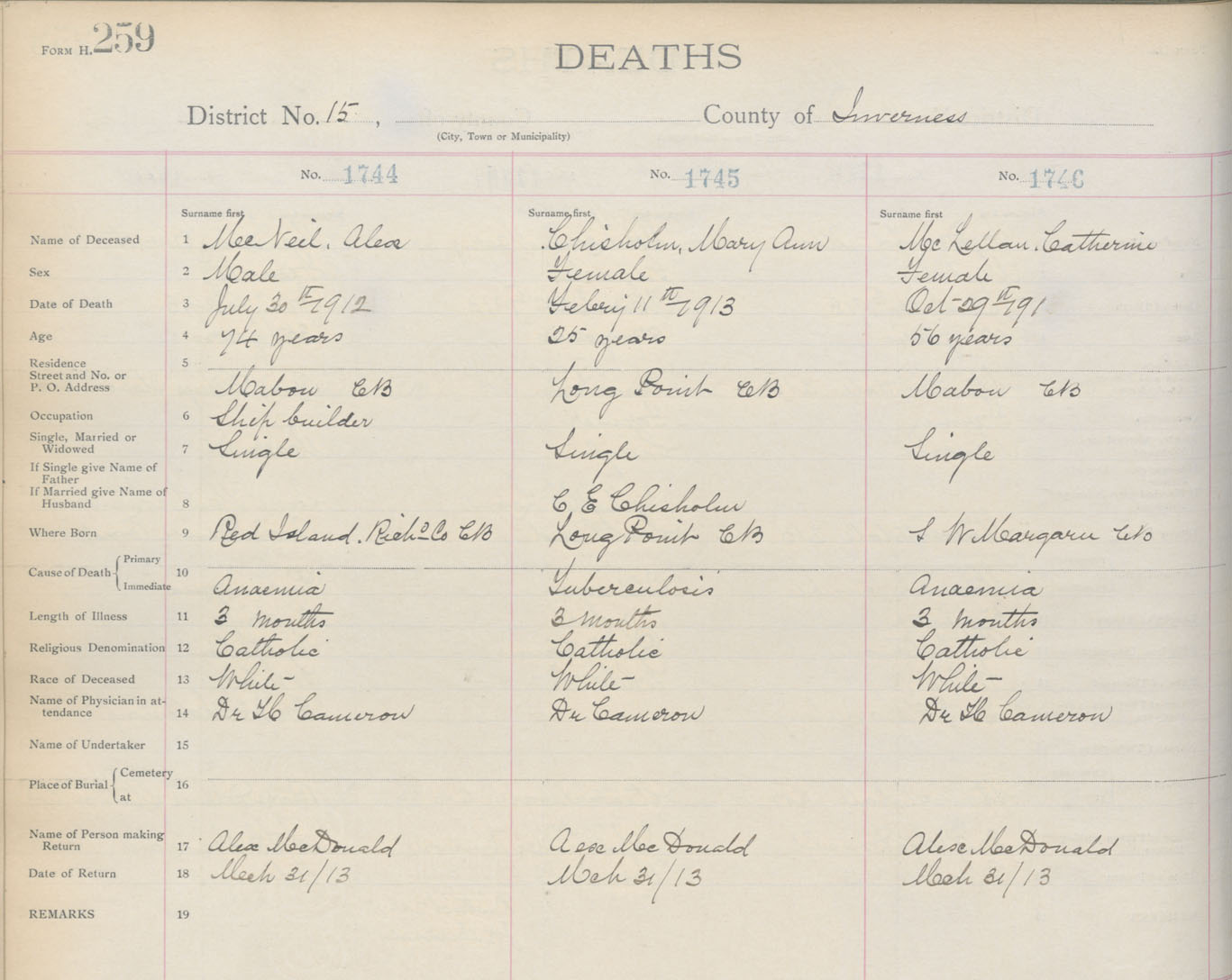 Death Registration: Year: 1913 book: 11 page: 259 number: 1746