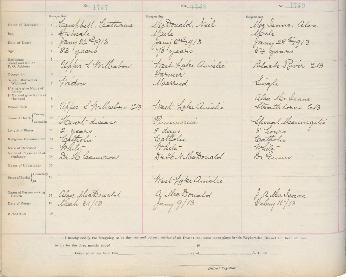 Death Registration: Year: 1913 book: 11 page: 259 number: 1749