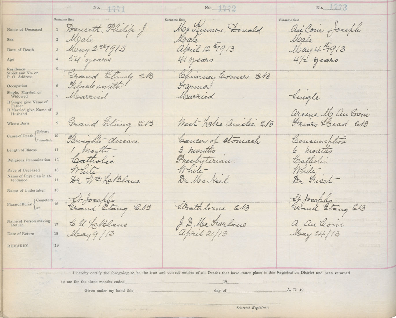 Death Registration: Year: 1913 book: 11 page: 263 number: 1771