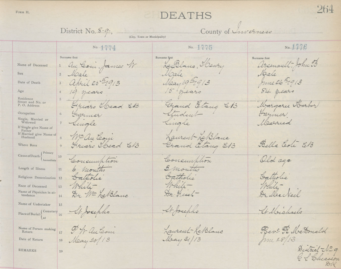 Death Registration: Year: 1913 book: 11 page: 264 number: 1774