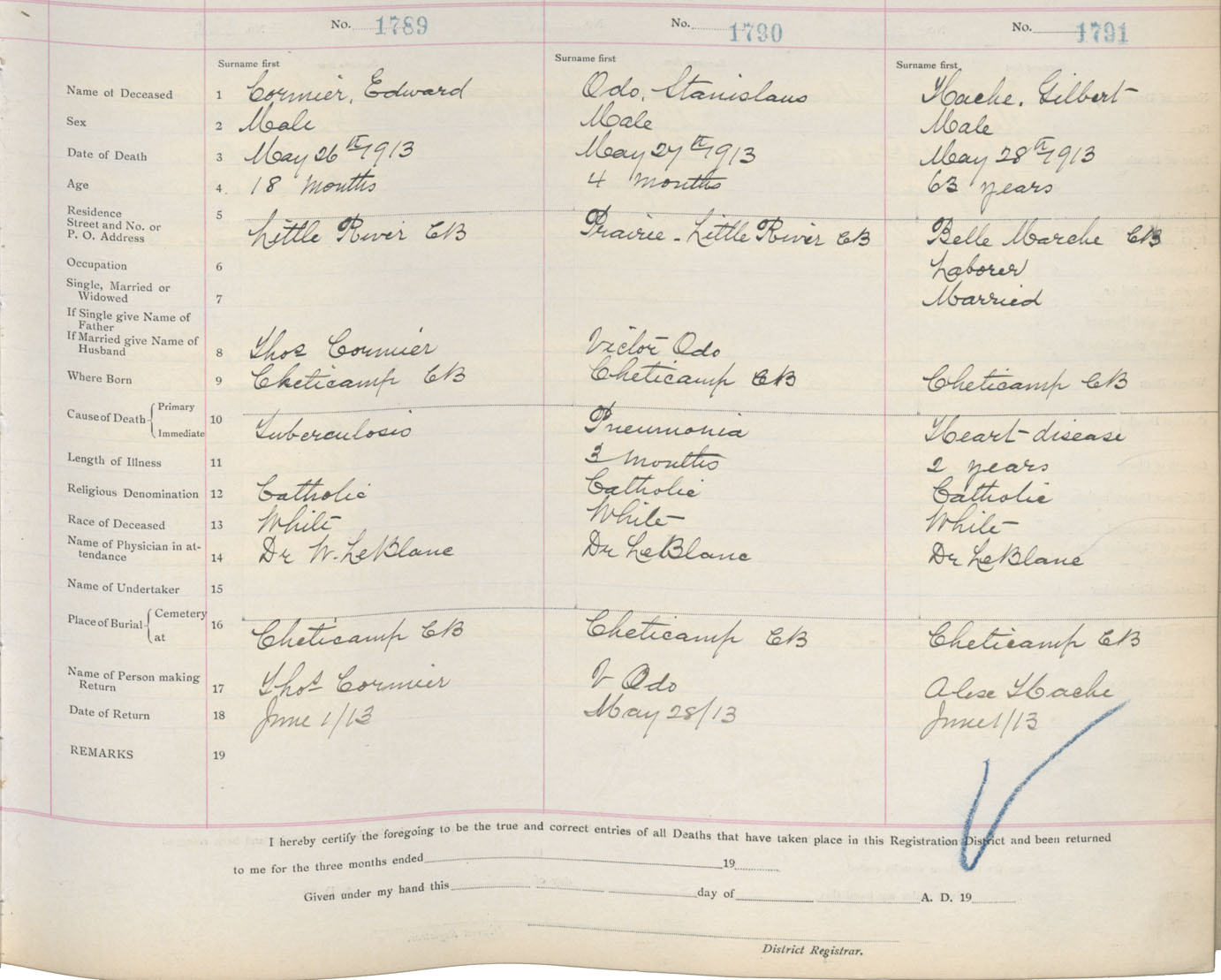 Death Registration: Year: 1913 book: 11 page: 266 number: 1791