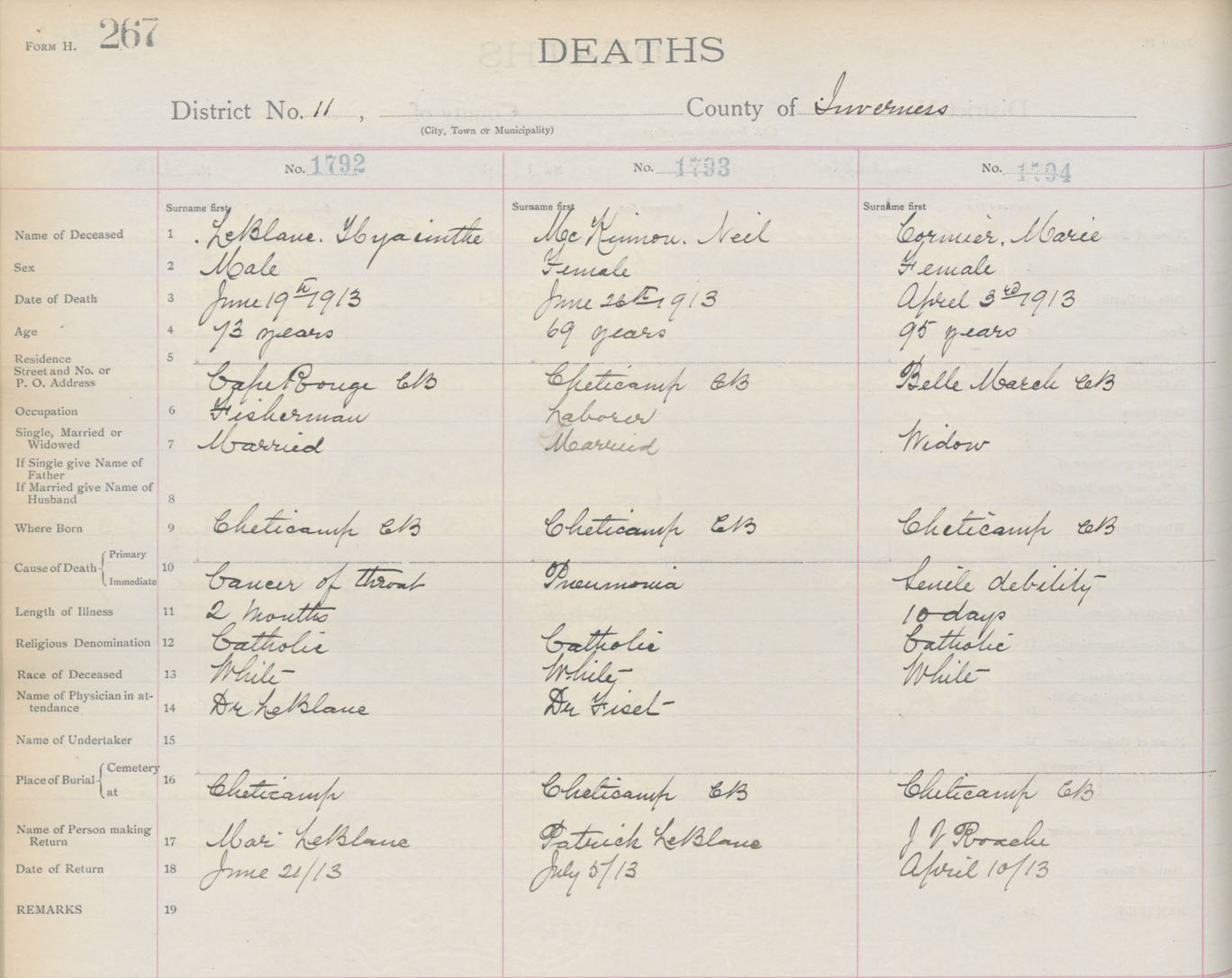 Female Death Registration: Year: 1913 book: 11 page: 267 number: 1794