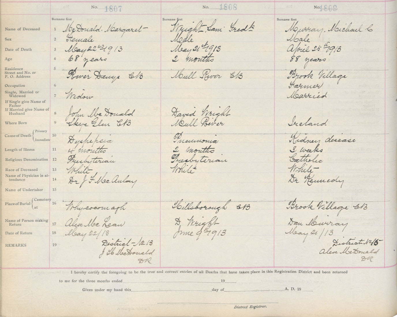 Death Registration: Year: 1913 book: 11 page: 269 number: 1807