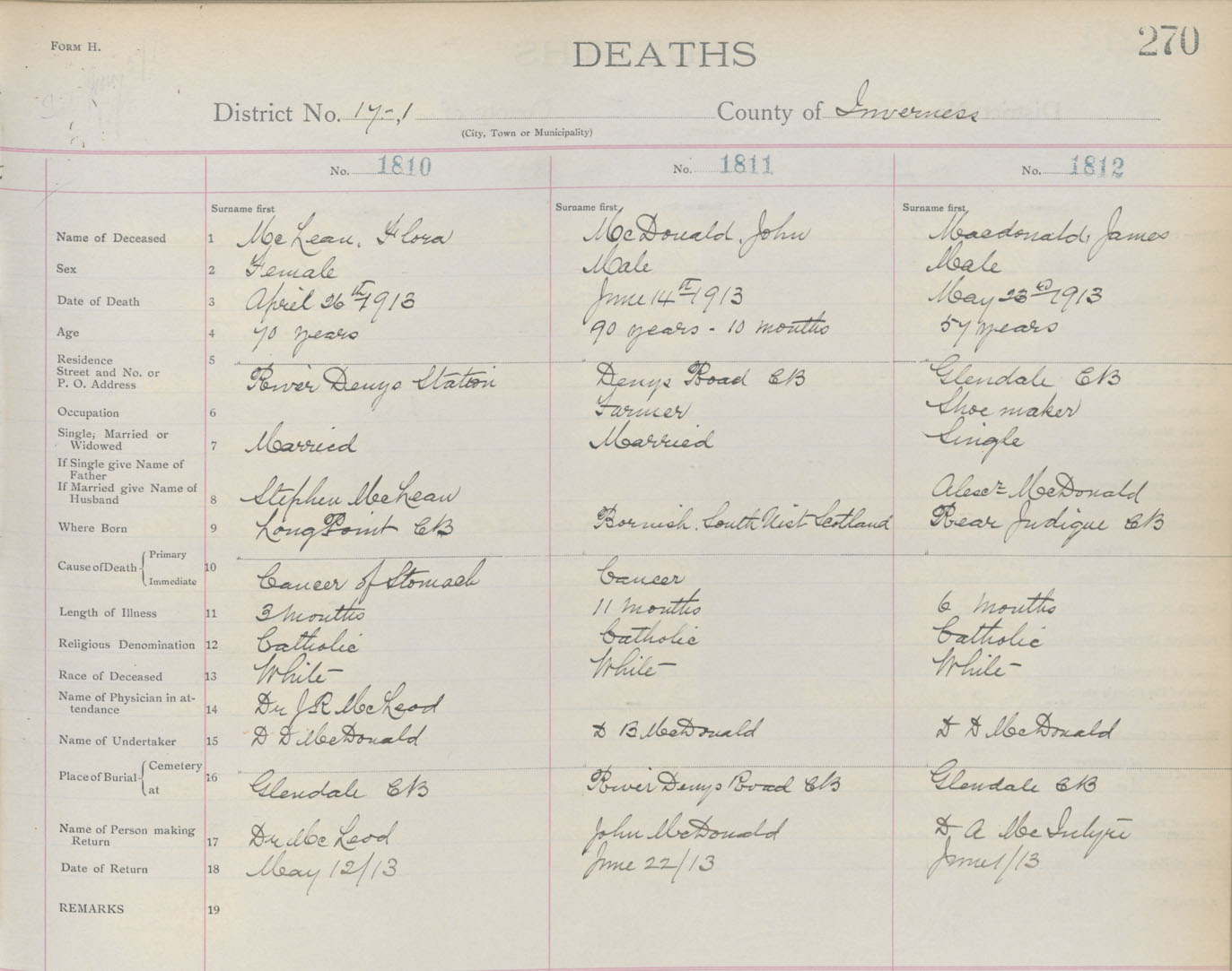 Death Registration: Year: 1913 book: 11 page: 270 number: 1810