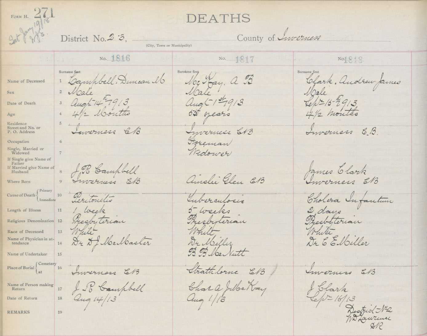 Death Registration: Year: 1913 book: 11 page: 271 number: 1816