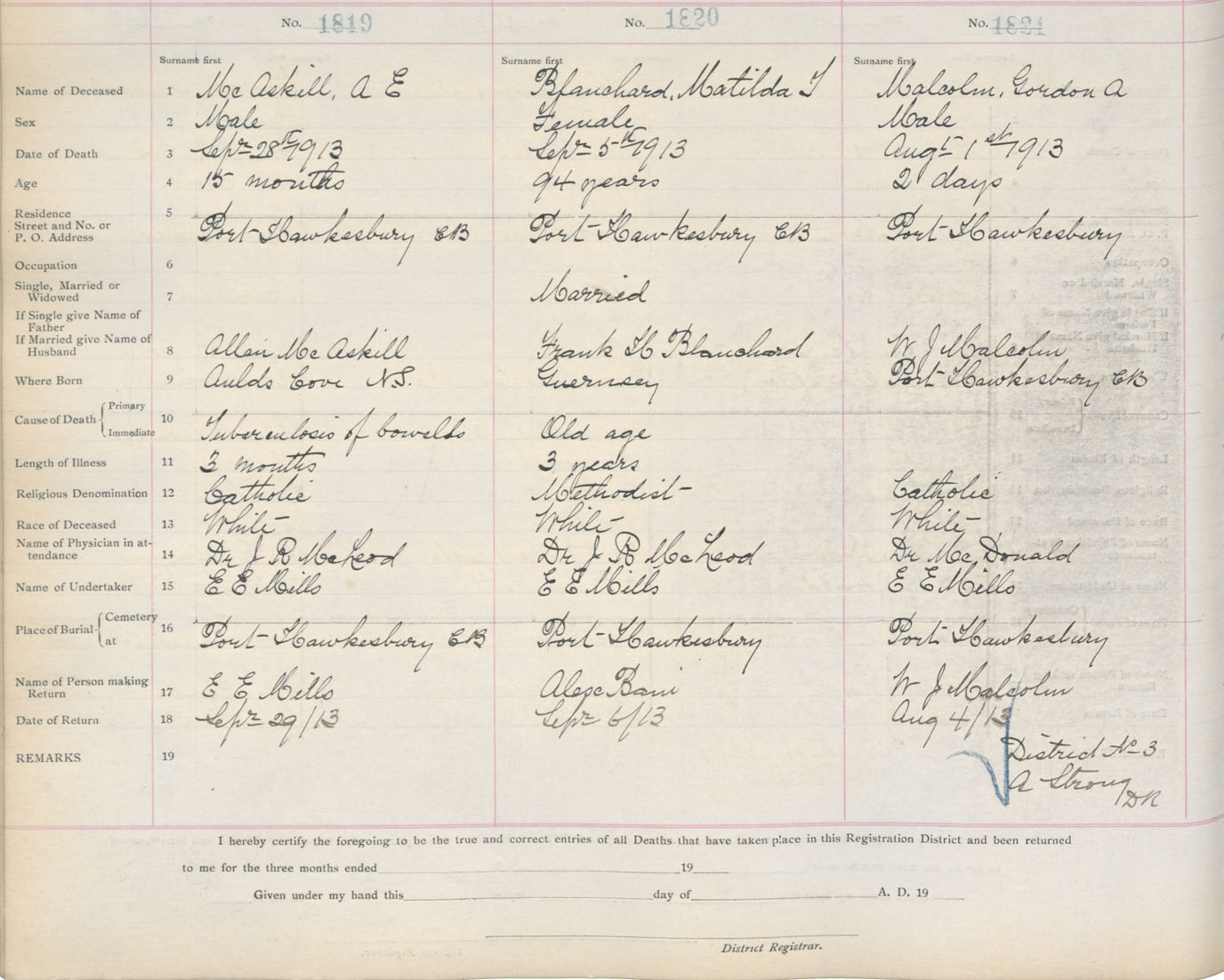 Death Registration: Year: 1913 book: 11 page: 271 number: 1819