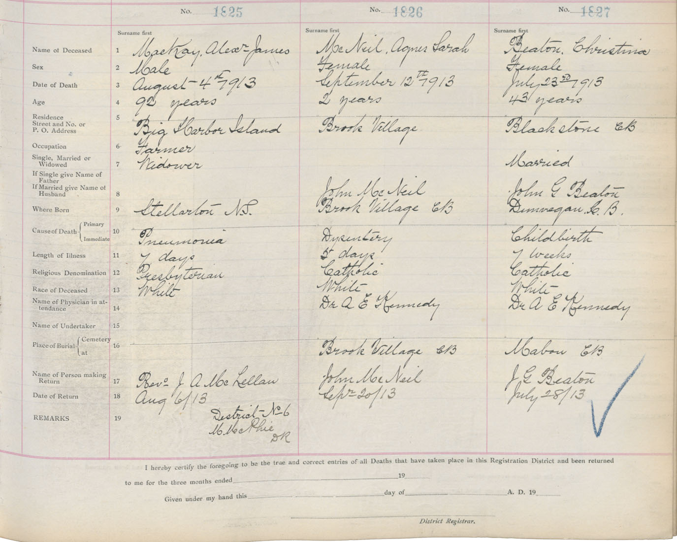 Death Registration: Year: 1913 book: 11 page: 272 number: 1825
