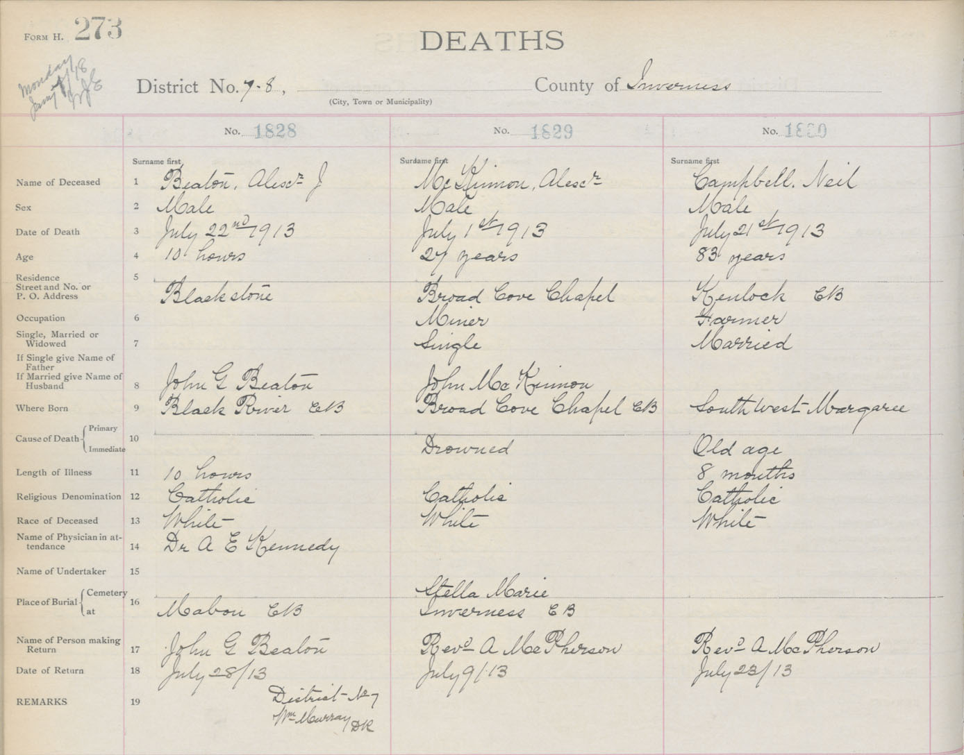 Death Registration: Year: 1913 book: 11 page: 273 number: 1828