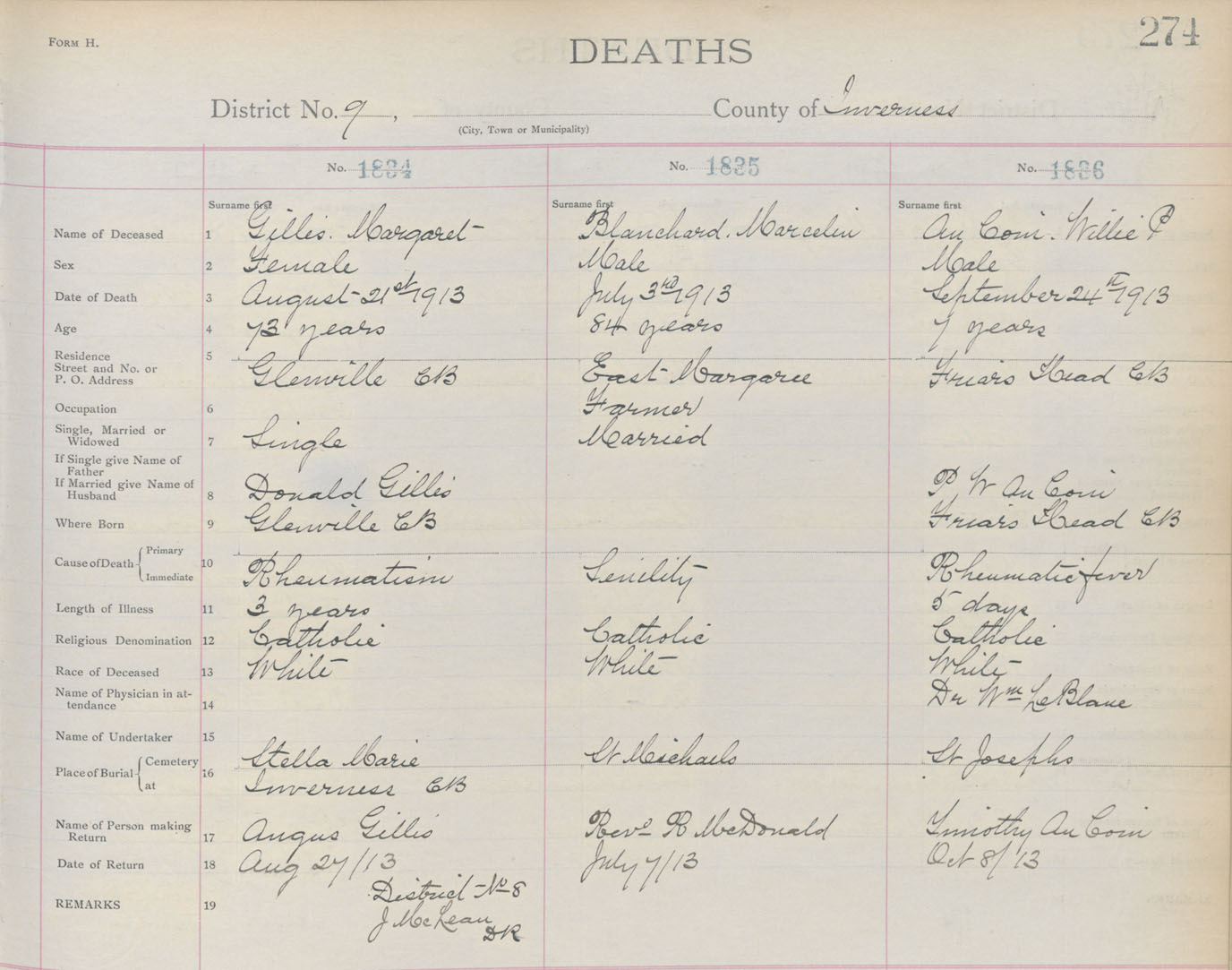 Death Registration: Year: 1913 book: 11 page: 274 number: 1834