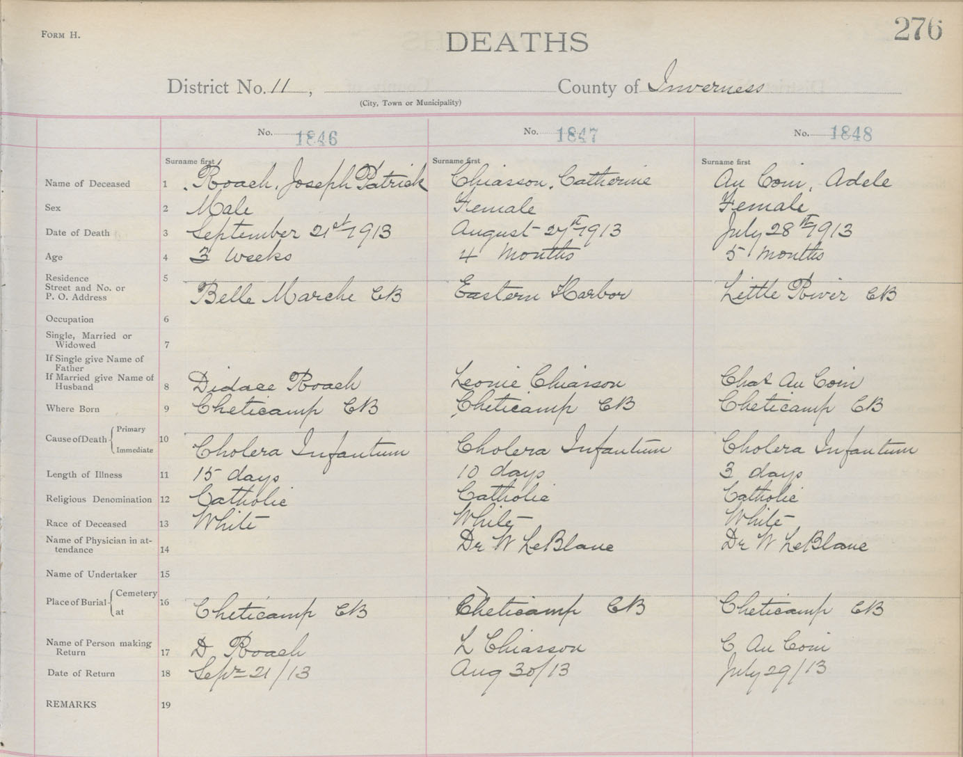 Death Registration: Year: 1913 book: 11 page: 276 number: 1846