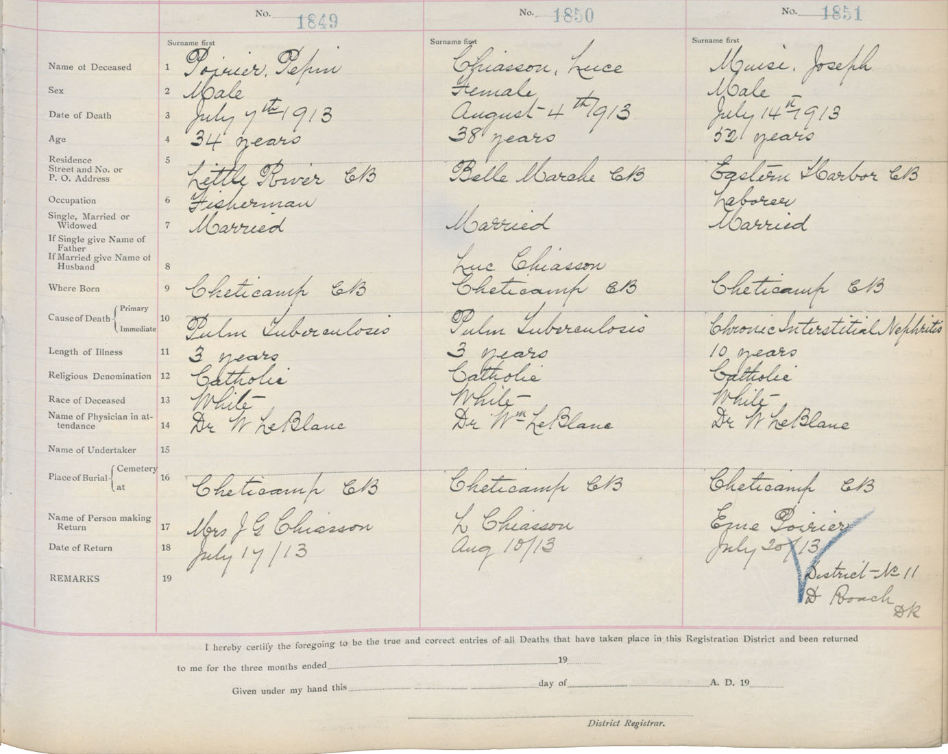 Death Registration: Year: 1913 book: 11 page: 276 number: 1849