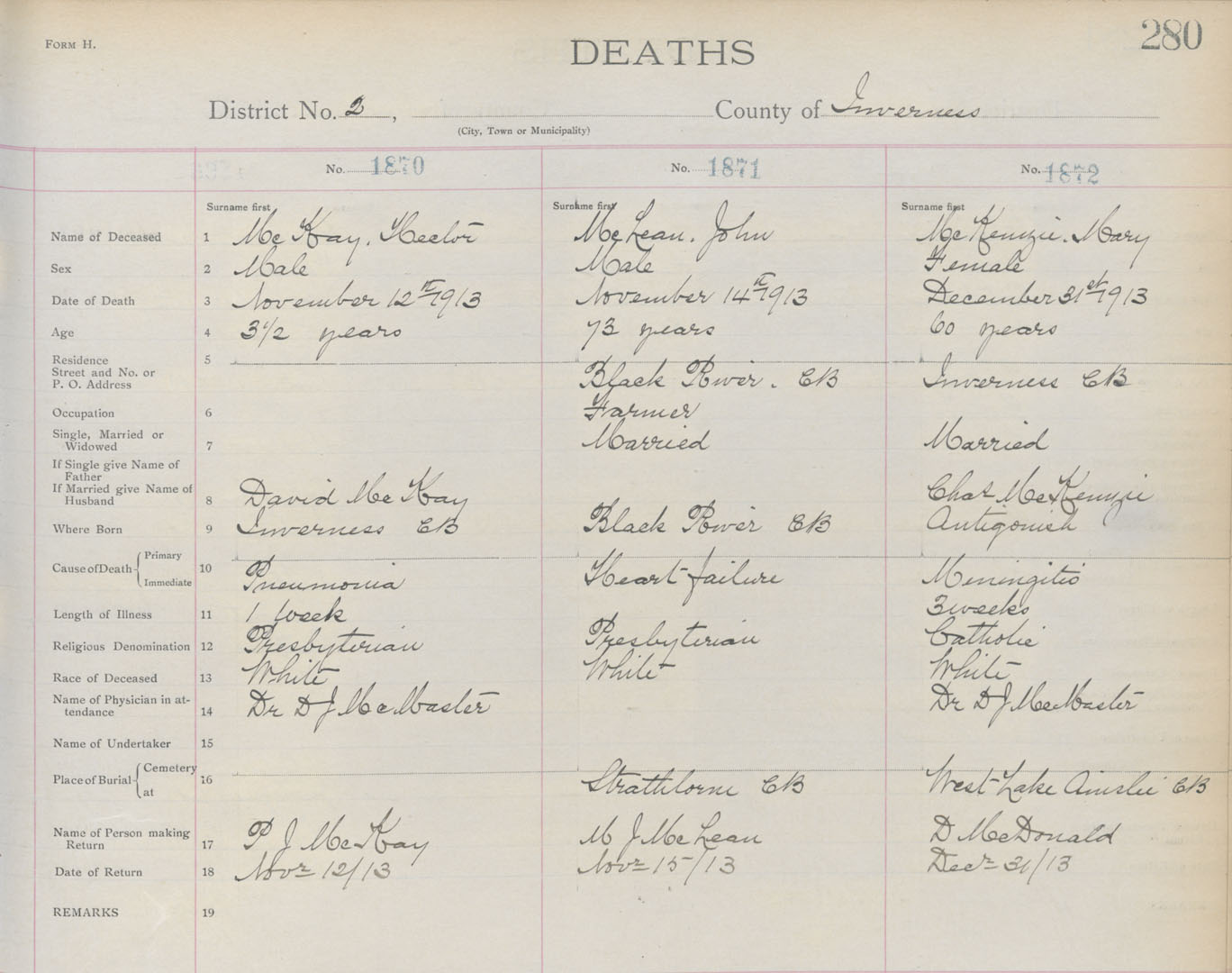 Death Registration: Year: 1913 book: 11 page: 280 number: 1872