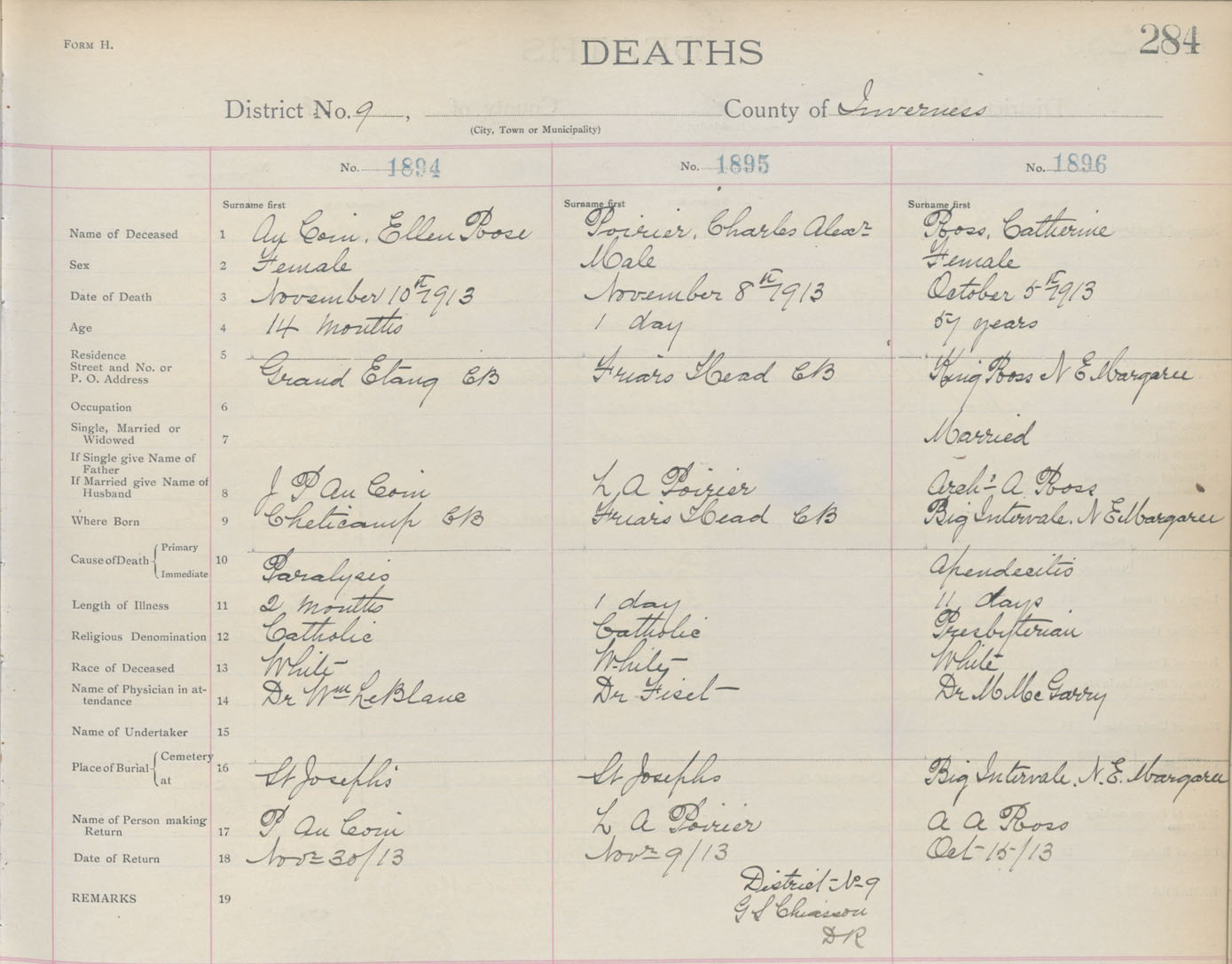 Death Registration: Year: 1913 book: 11 page: 284 number: 1896