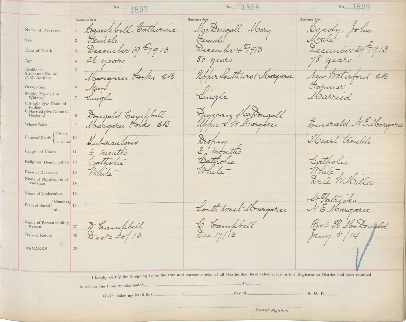 Death Registration: Year: 1913 book: 11 page: 284 number: 1899