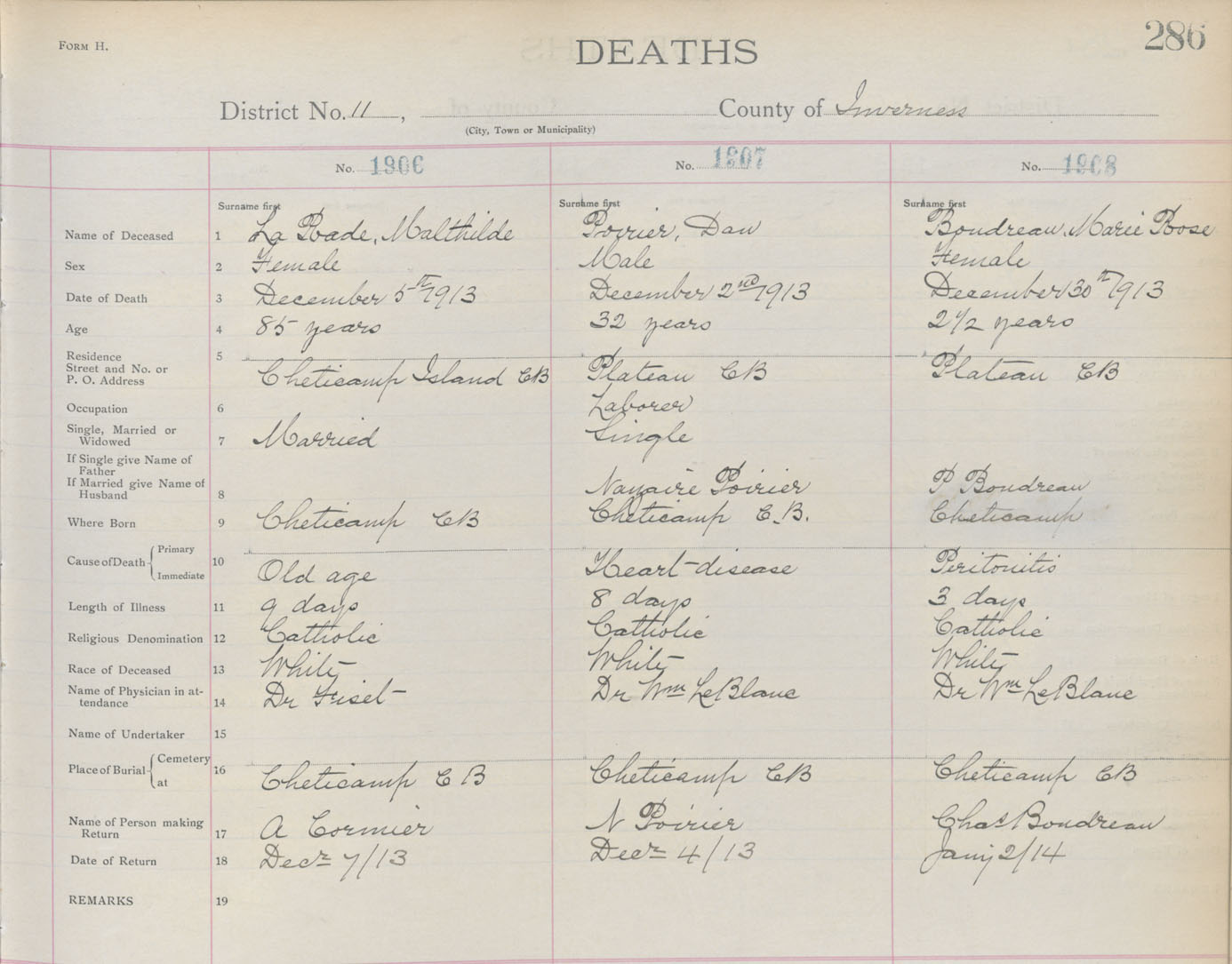 Death Registration: Year: 1913 book: 11 page: 286 number: 1906