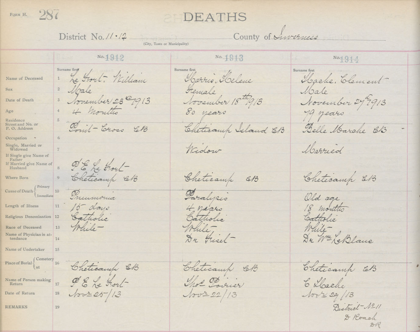 Death Registration: Year: 1913 book: 11 page: 287 number: 1912