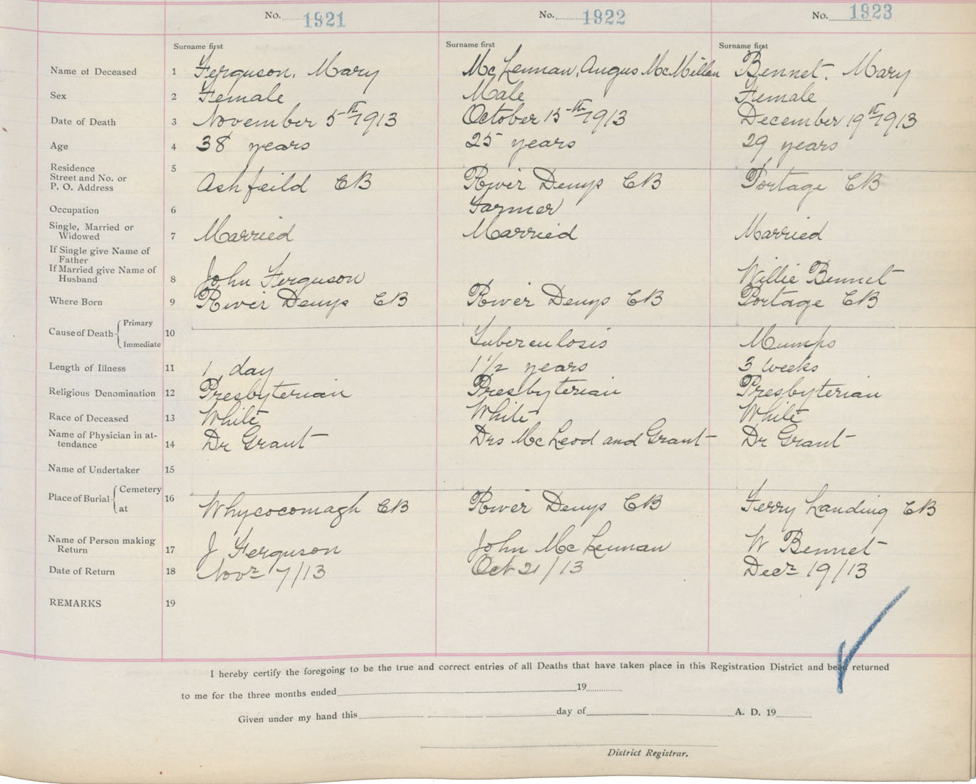 Death Registration: Year: 1913 book: 11 page: 288 number: 1921